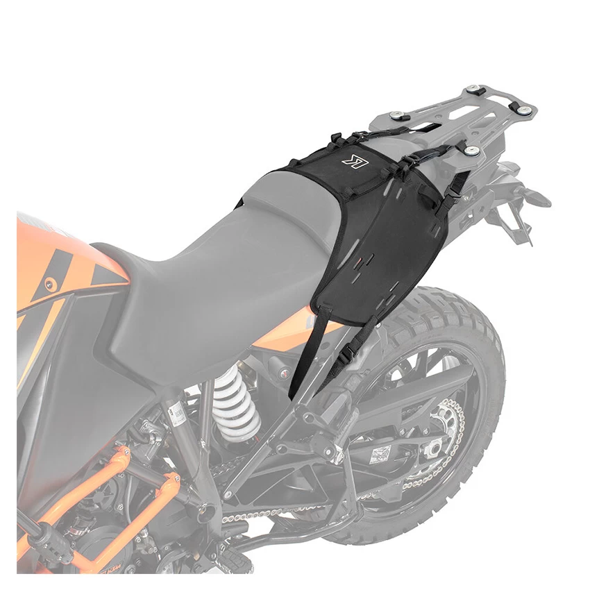 Kriega OS-Base specially designed for the KTM 1050, 1190 and 1290 models (KOSBA-A). Heavy-duty Hypalon harness with reinforced stitching at strategic points for mounting over the seat without drilling or modifying the bodywork or frame. The OS-Base offers space for OS-6, OS-12 or OS-18 bags and is supplied including mounting material to mount a tent or sleeping mat on the buddy seat.