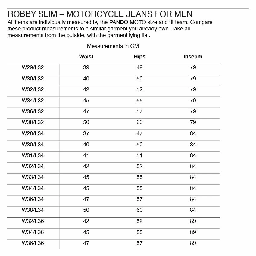 The Pando Moto Robby Slim motorcycle jeans are made of stretch 12oz cordura material that is highly abrasion-resistant and also reinforced with chain stitches to prevent tearing. The Robby Slim is fully CE with AA approval. As standard, these motorcycle trousers come with level 1 protectors on the hip and knee.