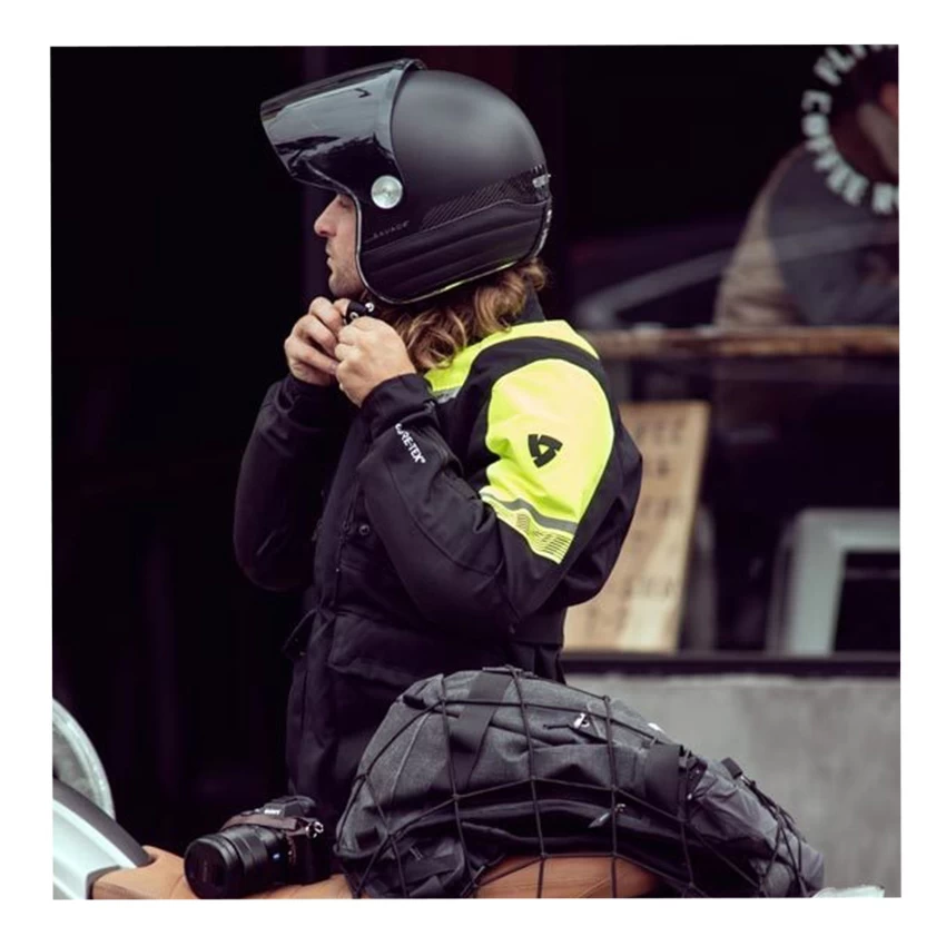 This jacket is purpose-built for all-season, daily commuters and long-distance travellers looking for versatility and 4-season usage. Both the jacket, as well as the trousers, are constructed of separate layers. Underneath the extremely abrasion-