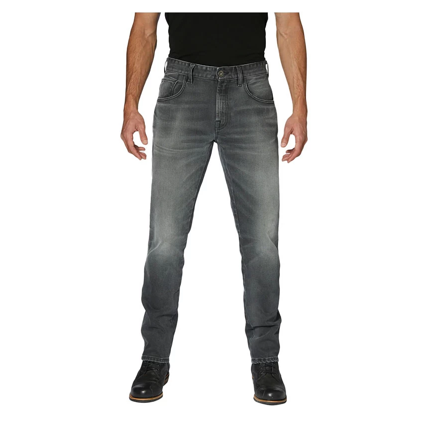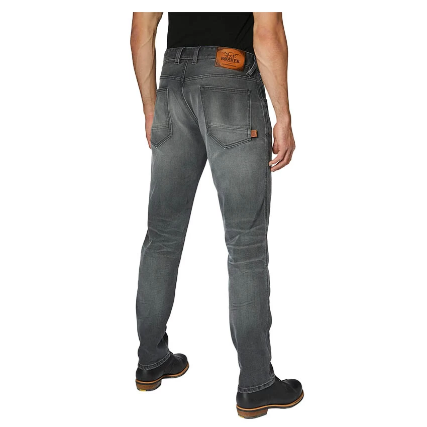 The Rokker Rokkertech is a highly abrasion-resistant, single-layer motorcycle jeans. Classic five-pocket style with zipper and comfortable tapered slim fit. The Rokkertech is standard delivered with protectors on the knees and hips. These jeans have no rivets that can scratch your motorcycle.
