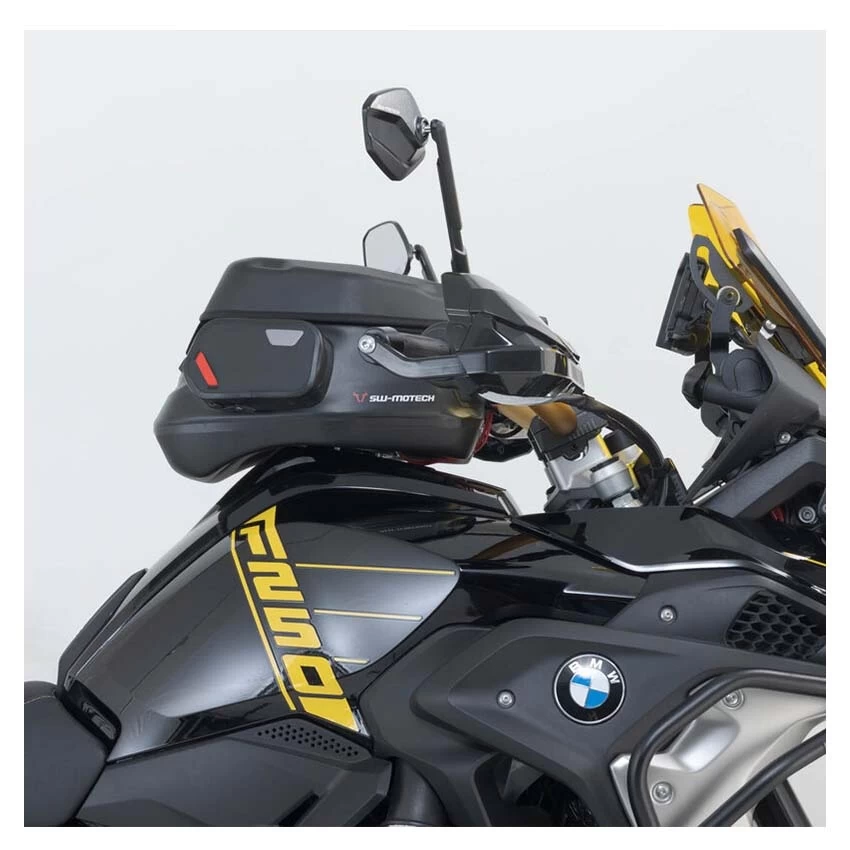Matching this, SW-Motech offers the patented PRO tank rings made of fiberglass-reinforced plastic (sold separately). They are manufactured to match the motorcycle model and attached to the tank filler neck. The robust PRO tank ring with magnetic guide aid secures the PRO tank bags with a mechanical QUICK-LOCK snap closure. This allows the tank bags to be attached or removed with just one hand.