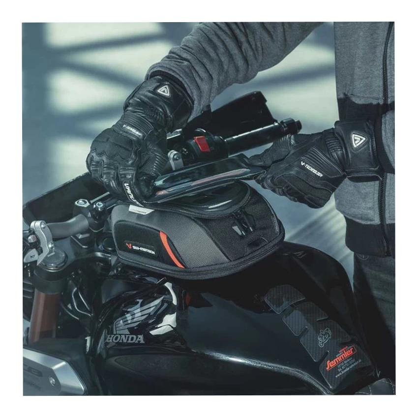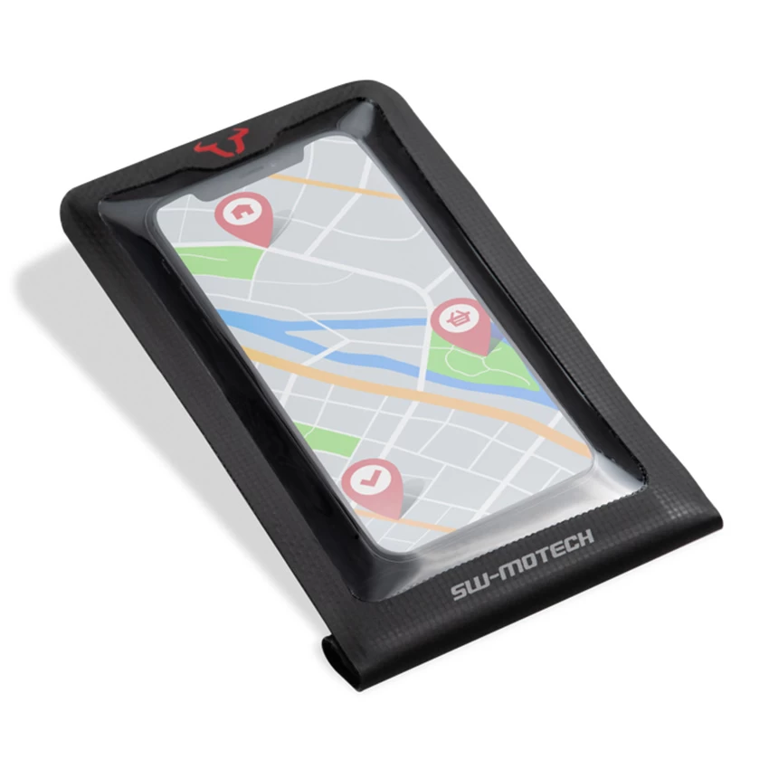 The waterproof Smartphone Drybag fits on every PRO tank bag. The holder’s plastic cover with its large clear PVC window and inner dimension of 160 x 80 mm is suitable for almost all common smartphones up to 6.5 inches. The smartphone is attached to the tank bag via the T-Lock mount.